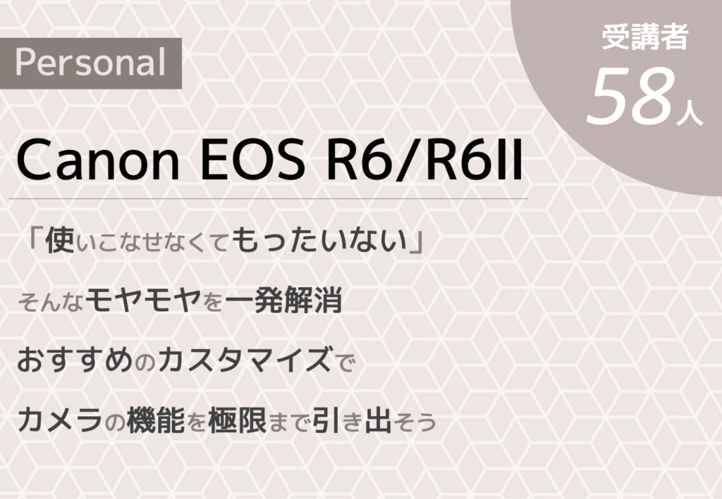 全てのR6/R6Ⅱユーザーへ贈る、EOS R6/R6Ⅱのポテンシャルを極限まで引き出すオンライン・パーソナル(マン・ツー・マン)レッスン。