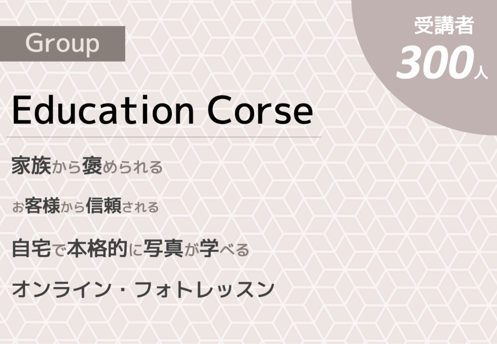 すでに300人以上が受講したオンラインのコース制ハイグレードレッスン。全国どこからでも本格的に写真が学べます。プロ・セミプロ・プロ志望から趣味の写真まで幅広く対応しているのが特長です。
