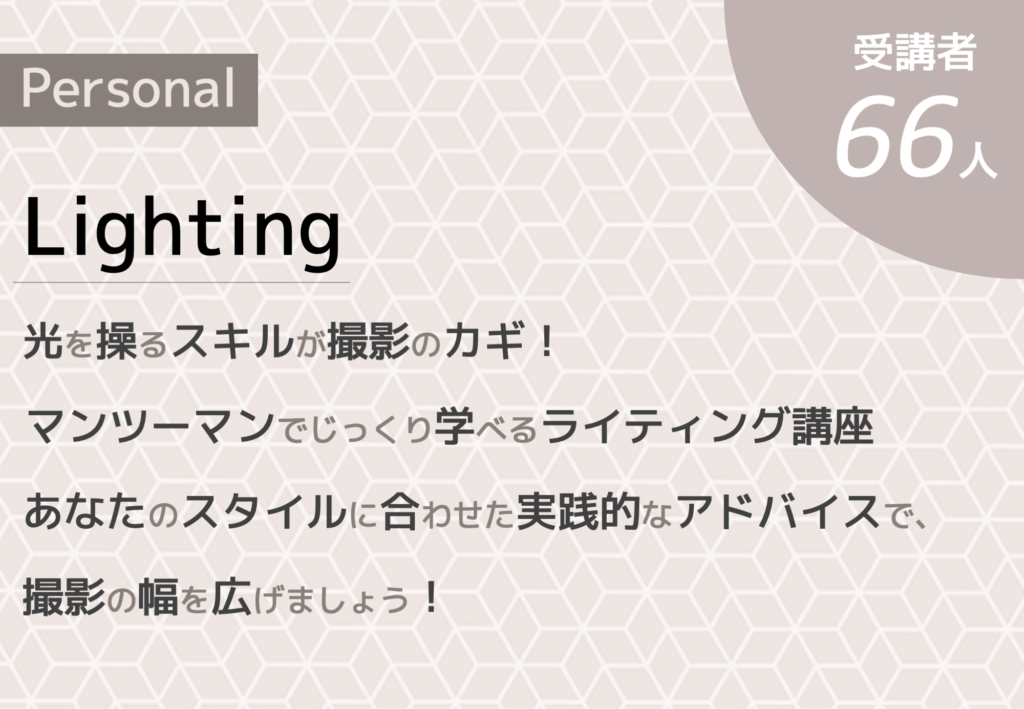 撮影の幅が広がるオフカメラ・ライティング。機材選びから応用まで、この講座を受ければライティングの世界の一歩を踏み出せます。